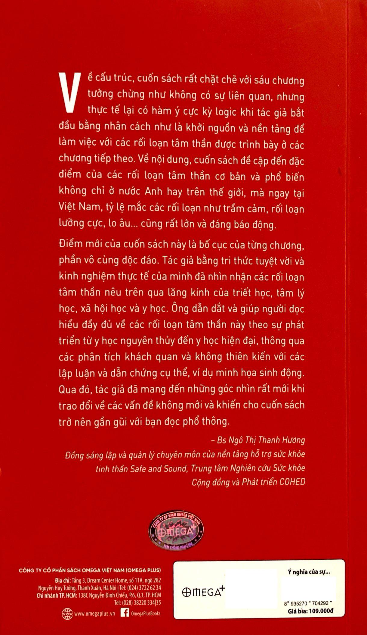Xã hội phát triển càng nhanh thì sức khỏe tâm thần của con người càng cần nhận được nhiều sự quan tâm và suy ngẫm một cách đúng đắn – khoa học. Với mục tiêu xuyên suốt là thông qua các chứng rối loạn để khám phá bản chất và tình trạng tinh thần của mỗi người, “Ý nghĩa của sự điên loạn” này là một cẩm nang NHẬN DIỆN và XỬ LÝ nỗi đau tinh thần có thể đồng hành cùng bạn trên hành trình khám phá và tự chữa lành trong m.ình.