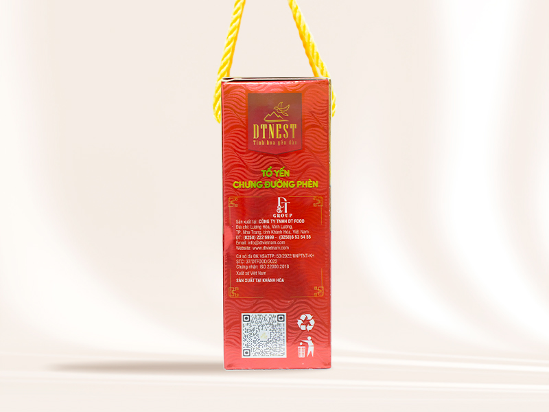 Hộp giấy chữ nhật kích thước 23x28x6 (cm) Gồm 2 hộp, mỗi hộp gồm 60 phần yến, mỗi phần 1,5 g + 60 gói đường phèn, mỗi gói 7 g 100% yến nguyên chất, KHÔNG