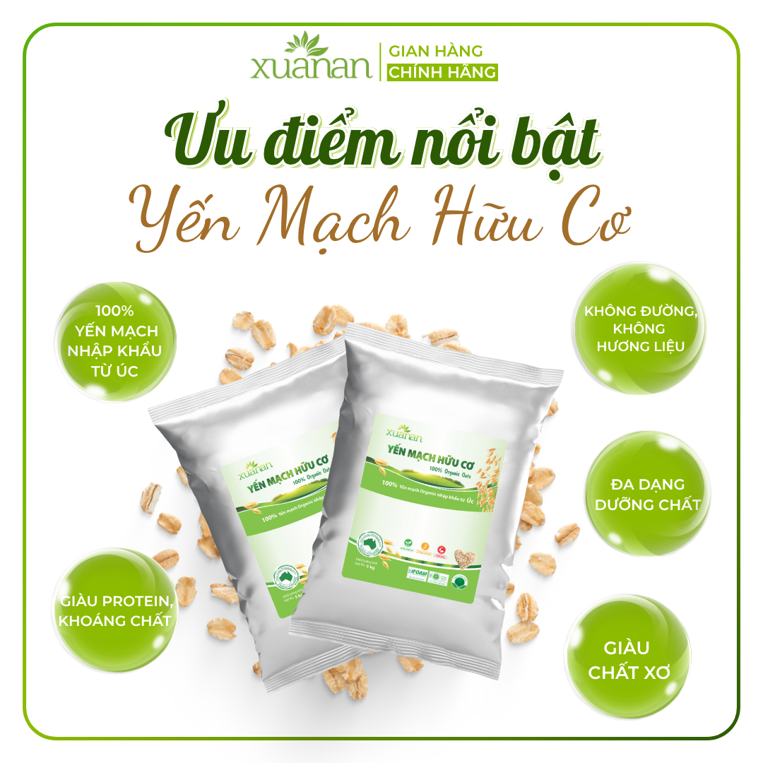 Yến Mạch Hữu Cơ là loại ngũ cốc giàu chất xơ, đạm, vitamin và dưỡng chất tự nhiên. Được mệnh danh là Vua của Ngũ cốc. 100% Yến Mạch Hữu Cơ Xuân An được nhập khẩu từ ÚC.