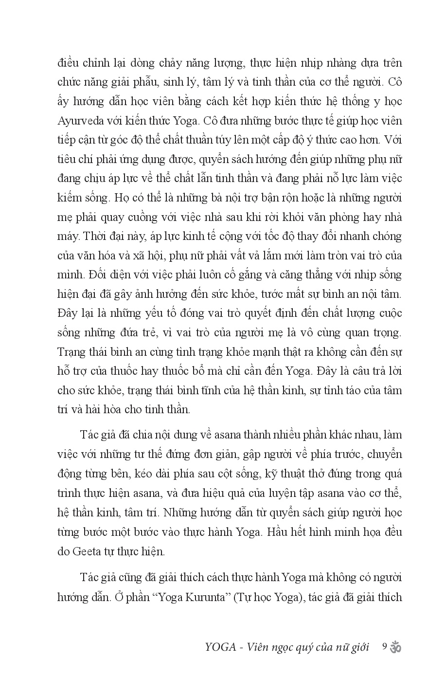 Đặc điểm lớn nhất của Sổ tay tự luyện tập Yoga là không đơn giản trong việc phân chia Yoga thành rèn luyện thể chất hay tinh thần, bởi hai yếu tố này bổ sung