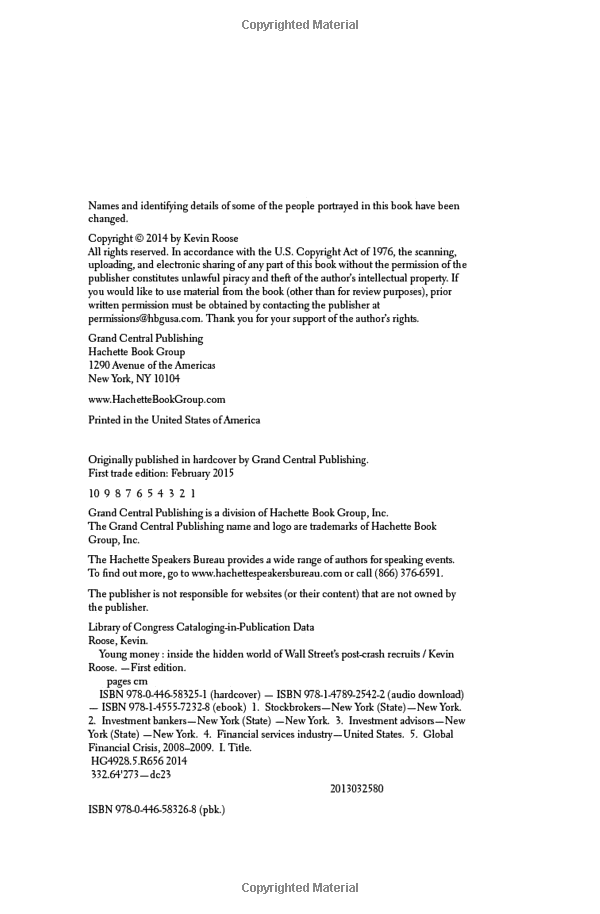 Roose's young bankers are exposed to the exhausting workloads, huge bonuses, and recreational drugs that have always characterized Wall Street life. But they experience something new, too: an industry forever changed by the massive financial collapse of 2008. And as they get their Wall Street educations, they face hard questions about morality, prestige, and the value of their work.