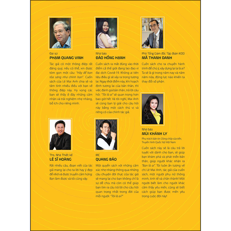 Đã bao giờ bạn tự hỏi “Tôi là ai” trong cuộc đời này? Bạn biết gì về thương hiệu cá nhân? Và làm cách nào để xây dựng thương hiệu cá nhân một cách hiệu quả? Thương hiệu cá nhân là một công cụ truyền thông độc đáo, cá tính và riêng biệt vì nó sẽ gửi đi một thông điệp nhất quán về việc bạn là ai và bạn có thể làm gì. Một thương hiệu cá nhân mạnh và chất sẽ giúp bạn trở nên khác biệt với tất cả mọi người, và có thể xác định vị trí của bạn như một chuyên gia trong ngành. Tác giả Lê Mai Anh, là Thạc sĩ MBA về Truyền thông trong Quản trị Doanh nghiệp & Lãnh đạo năm 2018, Đại học Cumbria – Anh quốc; từng đoạt giải thưởng Diamond – ASEAN PR Excellence Awards năm 2019; hiện là Giám đốc quản lý kinh doanh của Hãng tin Reuters và Giám đốc Quốc gia PR Newswire tại Việt Nam. Với hơn 15 năm kinh nghiệm trong mảng truyền thông và quan hệ báo chí, Tác giả sẽ từng bước giúp bạn nhận thức rõ giá trị cốt lõi của bản thân, từ đó biết cách thể hiện tốt nhất ưu điểm của mình. Bắt đầu từ việc nhận diện thế mạnh tới phát huy chúng và nhận được đánh giá tích cực từ mọi người xung quanh – mỗi trang sách đều đầy ắp những thông điệp tích cực và những lời hướng dẫn chân thành.