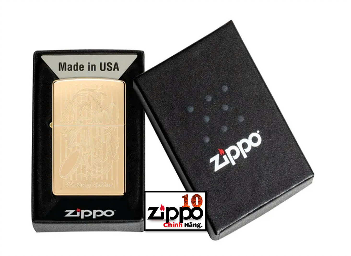 Bật lửa Zippo chính hãng Made in USA 100% Âm thanh mở nắp đặc trưng với tiếng "click" Chống gió tốt trong môi trường gió mạnh, ngay cả trước quạt máy Fullbox 100% trong hộp